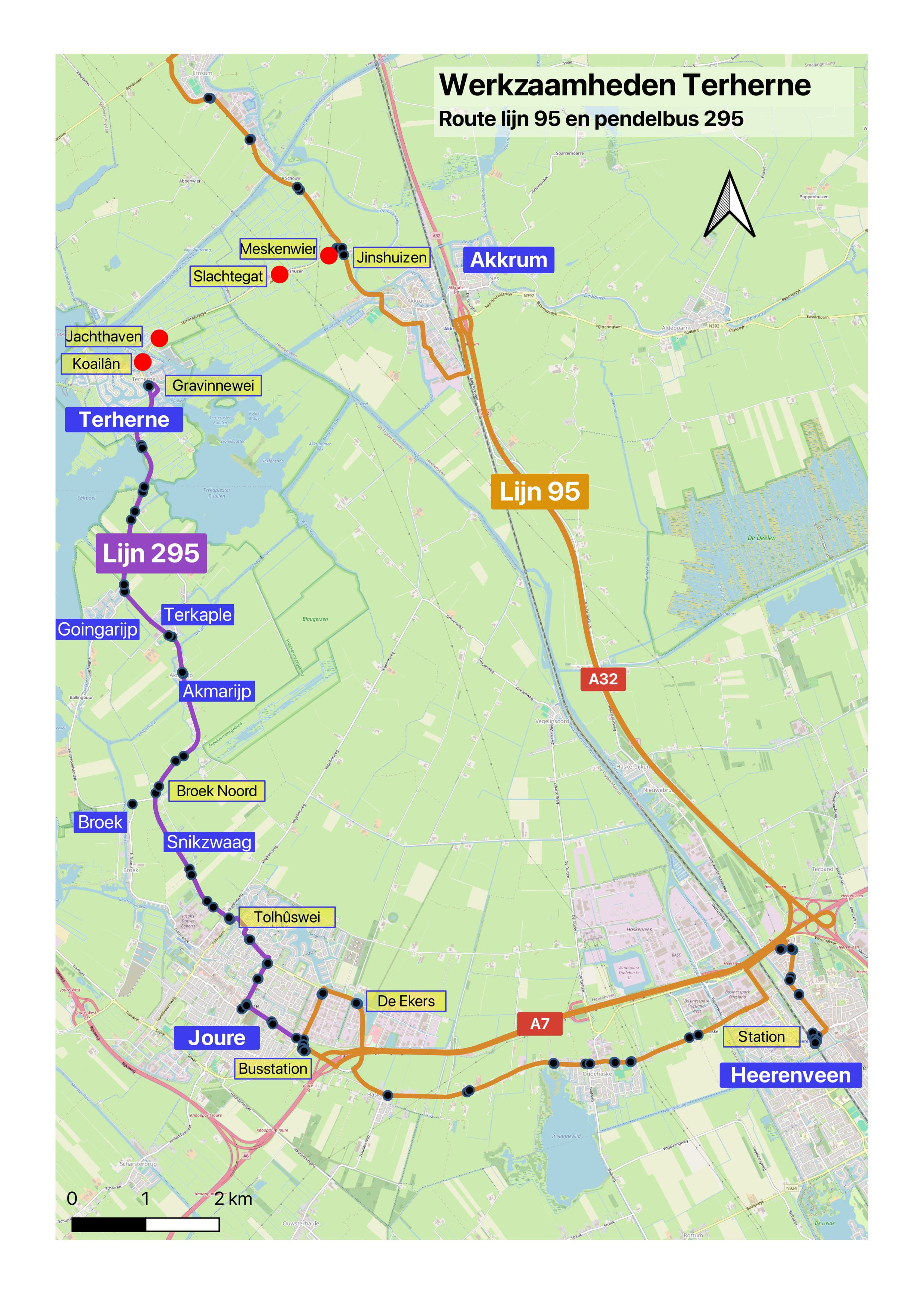Vanwege werkzaamheden aan de Oude Zandslootbrug in Terherne rijdt lijn 95 tijdelijk een andere route vanaf 17 november 2025 tot en met 27 februari 2026. Voor reizigers uit Terherne en omliggende dorpen heeft dit grote invloed: zij kunnen gebruikmaken van pendelbus 295 of de opstapper.