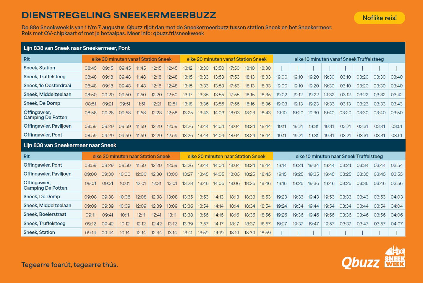 Tijdens de 88e editie van de Sneekweek, van vrijdag 1 tot en met donderdag 7 augustus 2025, zet Qbuzz een speciale pendelbus in: de Sneekermeerbuzz (lijn 838).